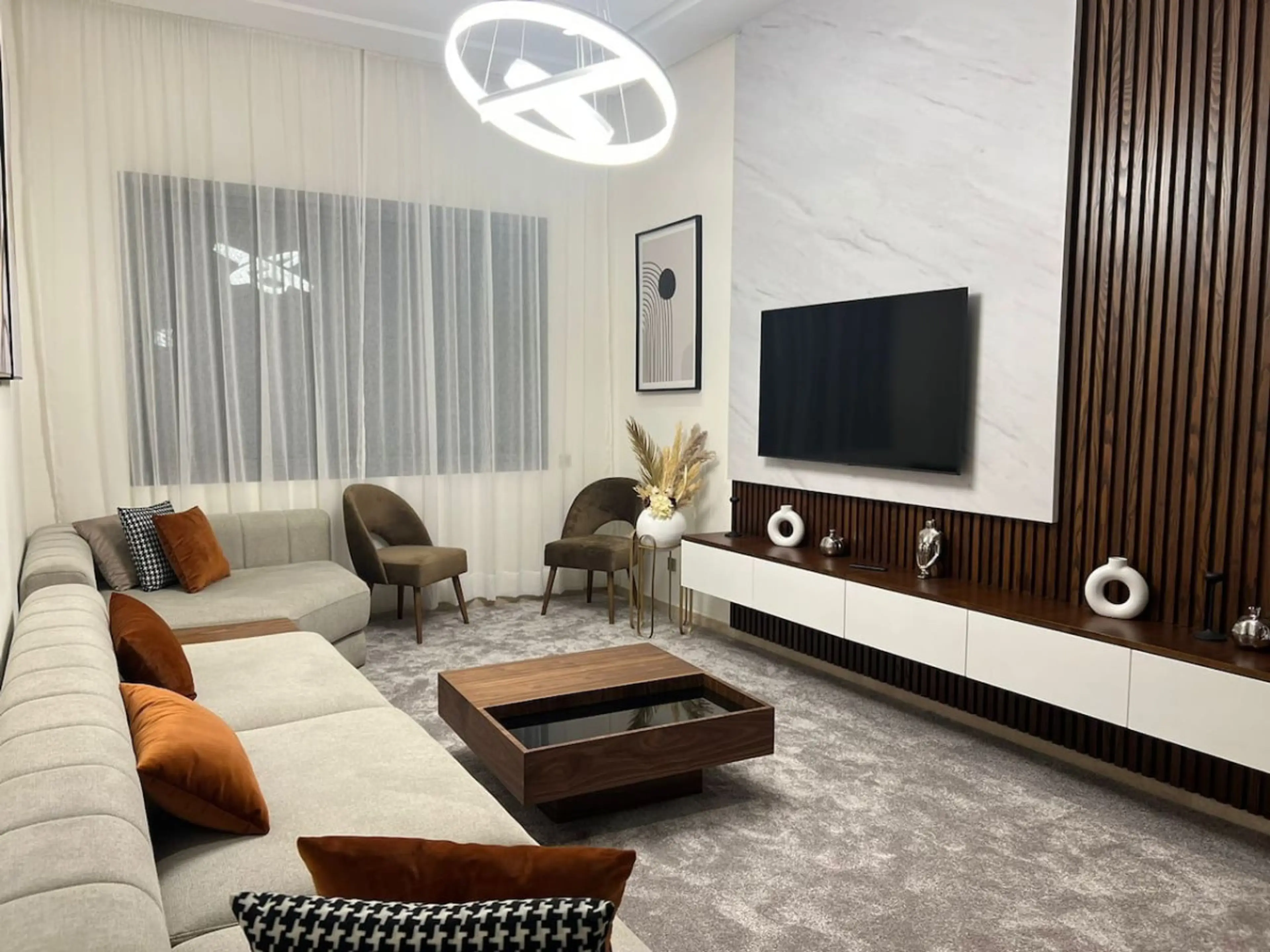 Bring the whole family to this great place with lots of room for fun.Stylish Brand new apartment fully stylish Modren furnished, Located on Ground Floor of a very unique , New Luxury residence block in the heart of Casablanca .Centrally located Location in the heart of the city and Amazing neighbou...